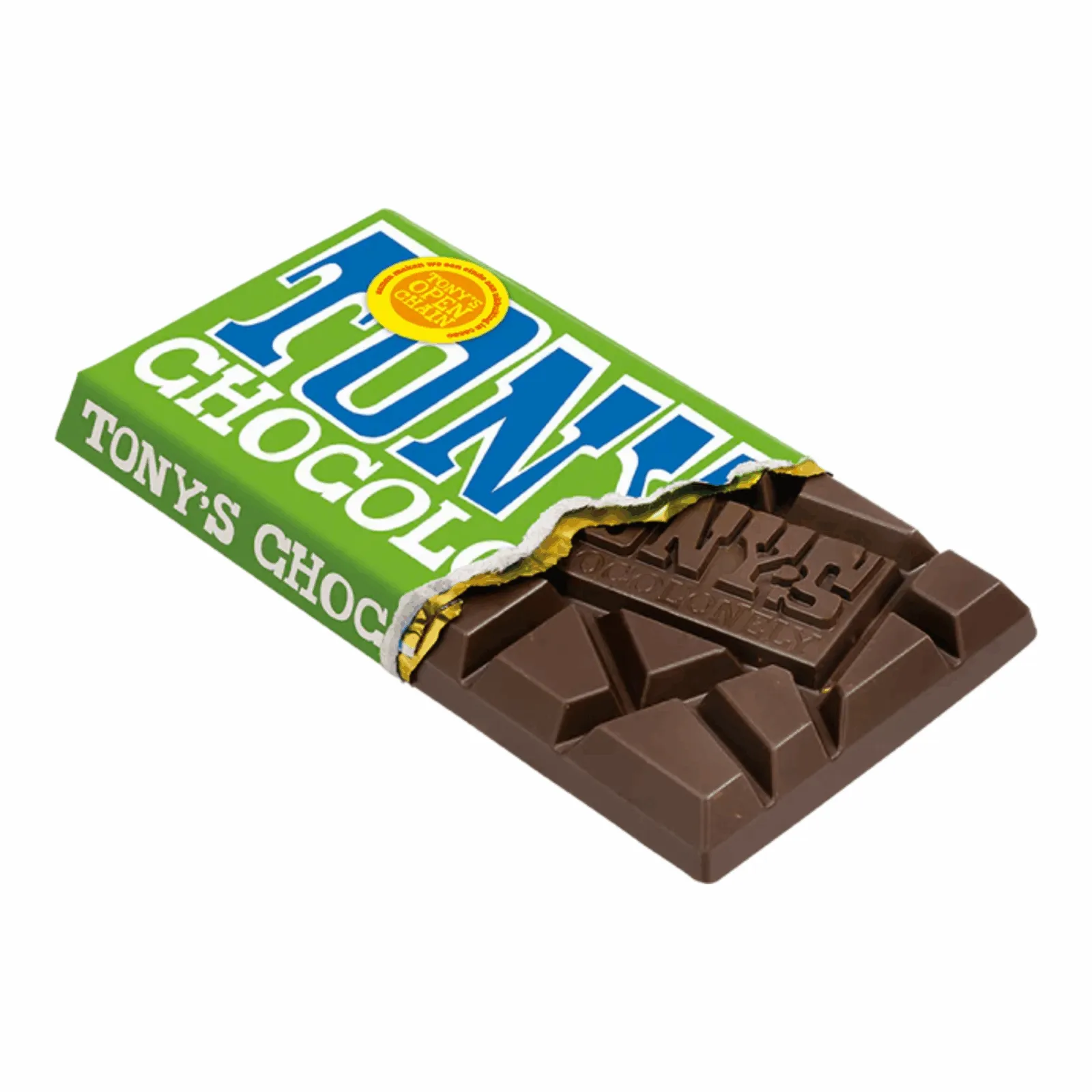 De Tony's Chocolonely reep pure chocolade amandel en zeezout. Een heerlijke combinatie van pure chocolade, knapperige stukjes amandel en zeezout. De combinatie waarvan je niet wist dat je hem nodig had. Je gebruikt de Tony's Chocolonely melkchocolade reep in bakrecepten, om te smelten en verschillende lekkernijen in te dippen, als cadeau of heerlijk tussendoortje. Tony's Chocolonely reep melkchocolade koop je voordelig op Compliment.nl per doos met 15 repen van 180 gram. Een reep heeft de afmetingen van: 8cm x 16cm. Ook de Tony's Chocolonely melkchocolade 35 x 50 gram of in een feestelijke 'Bedankt'wikkel koop je het voordeligst op Compliment.nl.