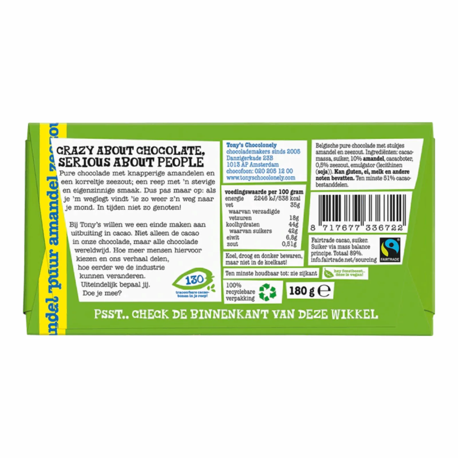 Tony’s Chocolonely Reep Pure Chocolade Amandel & Zeezout (15x 180gr)