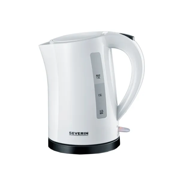 Een degelijke witte waterkoker met een capaciteit / inhoud van 1,5ltr en een vermogen van 2.200W. waterpeilindicatie aan beide zijden voor comfortabel aflezen van het waterpeil praktische en aangename eenhandsbediening eenvoudig te reinigen doorklapdeksel met grote opening 360° central-cordless-system: kan snoerloos uit elke richting op de apparaatsokkel worden gezet door roestvrijstalen plaat afgedekt verwarmingselement oververhittingsbeveiliging automatische stoomstop aan-/uitschakelaar met controlelampje giettuit met zeef warmte-geïsoleerde kunststof handgreep rubberen antislipvoeten snoeropwikkeling