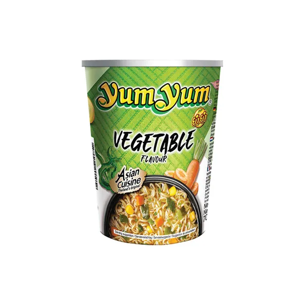 De YumYum Groenten Noedels Soep Cup is een snel te bereiden instant noedelsoep met een zachte groente smaak. Binnen drie minuten op tafel klaar: voeg kokend water tot aan de markering (~260 ml), laat de cup afgedekt staan, even roeren en genieten.